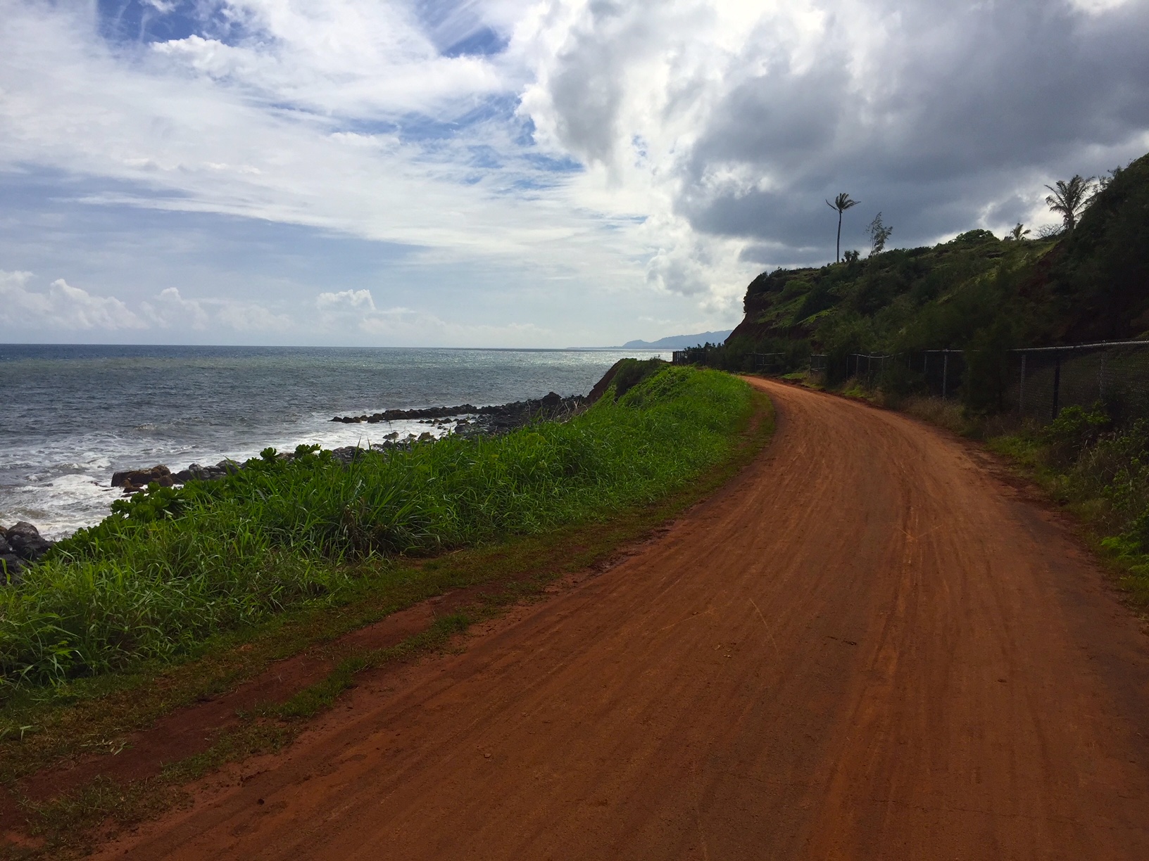 Okay, here we go again. There’s lots of “red mud” on Kauai, whether you’re up on one of the peaks or down by the shore. As dirt or dust, it tends to cling to everything. After it rains (and it rains on Kauai just about every day) it’s pretty slippery. You don’t want to slide off the trail and onto the rocks. I don’t know that from experience, but it’s a pretty easy call to make. So far, I’ve survived.