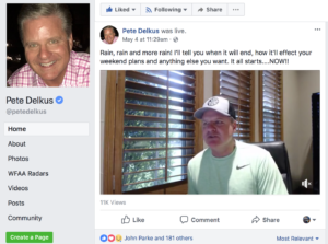 Pete is very big into social media as a way to communicate with WFAA viewers to keep them up to speed on the weather situation around the Dallas – Fort Worth area. He tweets a lot, posts numerous times a day on Facebook, and every now and then he’ll do a Facebook Live video stream. Viewers can make posts while he’s on, and he’ll answer their questions. It’s a pretty cool deal, even if you’re not in the DFW area.
