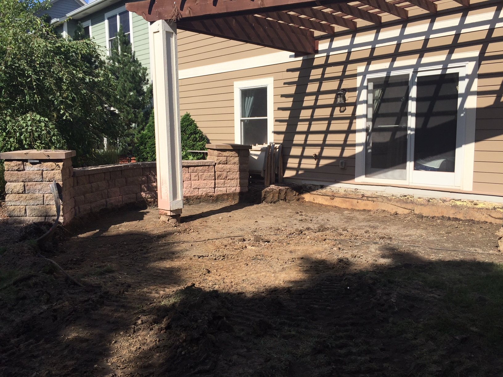 Nobody was laughing, though, when they got all the concrete out. These guys do things right, and they could not believe what was under our patio. What was it? Well, it was more of a “What wasn’t it?” There was no prep work done at all. The builder just slapped four inches of concrete right on the clay. No wonder it would rise and fall up to three inches in the winter. This crew just stood there, scratched their heads, and were nearly speechless. The team leader said, “When we’re done, you won’t believe the difference.