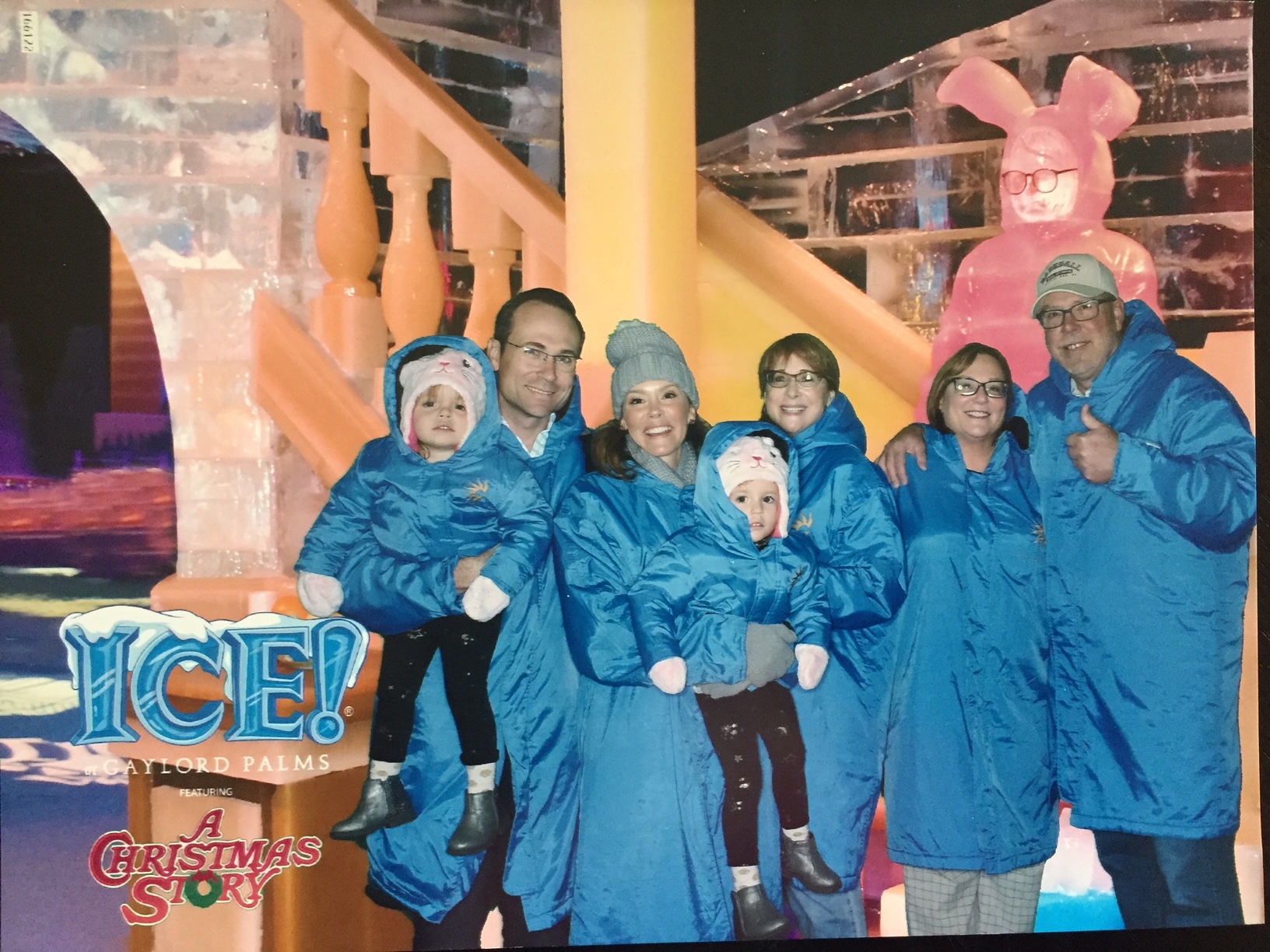 The next big adventure in Orlando was really fun, and a little humorous for two Minnesotans. Whether it’s local Floridians or visitors from other places, there are a lot of people in Orlando who really don’t know what a serious winter is like. So, they create one! It’s called “Ice” and it fills a huge convention space at the Gaylord Palms Resort. Somehow, they use massive refrigeration units to get it down to just 9 degrees (yep, you read that right, they get it down to 9 degrees) and as you walk through the winding path you see fantastic ice sculptures. You’re basically surrounded by ice, and it’s legit cold in there. They provide everyone with a parka, but I was not totally understanding just how cold the place would be. Gloves would’ve been nice. Actually my hands only got cold at the end of the 20-minute stroll through the sculptures (the theme was the classic movie “A Christmas Story”). The Floridians? They were freezing, but the twins loved it. They slid down the ice slide over and over.
