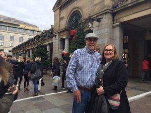 Covent Garden is a well known area of London that’s full of shops, kiosks, bistros, and stores that sell everything from hand-made jewelry to Premier League soccer scarves, plus everything in-between. It’s also very popular. The Tube cars were packed, too, and the Covent Garden station is one that doesn’t have escalators. You can either climb 15 flights of stairs to get up to the street, or cram into one of three elevators (lifts). Between the Tube and the lift, it was everything a person with claustrophobia would hate. Fortunately, I rarely feel that stuff but Barb does get pretty stressed when it’s really bad, and the crowded lift was really bad. We were jammed in there with absolutely no space between any of us. It felt good to get out of that box and onto the street.