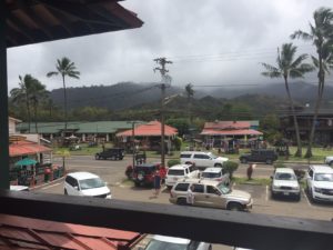 I got a little wet in Hanalei, but I didn’t melt. I’d been to this restaurant before and was fortunate enough to get a table by the open windows. It’s a wonderful little town. I was going to get their marvelous fish and chips but for the first time I can ever remember the server said “OK, but just so you know, we’re out of french fries.” Out of fries. Remember, everything has to be shipped in. I guess you can run out of fries. I’ve never been to a place where they did, but I guess you can run out of fries.