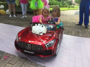 The girls took almost all of their gifts home, and as you might imagine almost all the presents were Disney products. It took them the rest of the day, after the party, and part of the next morning to unwrap them all. But the one present they got at the party was a new car. I’m not kidding! They got a new car. Just for them.