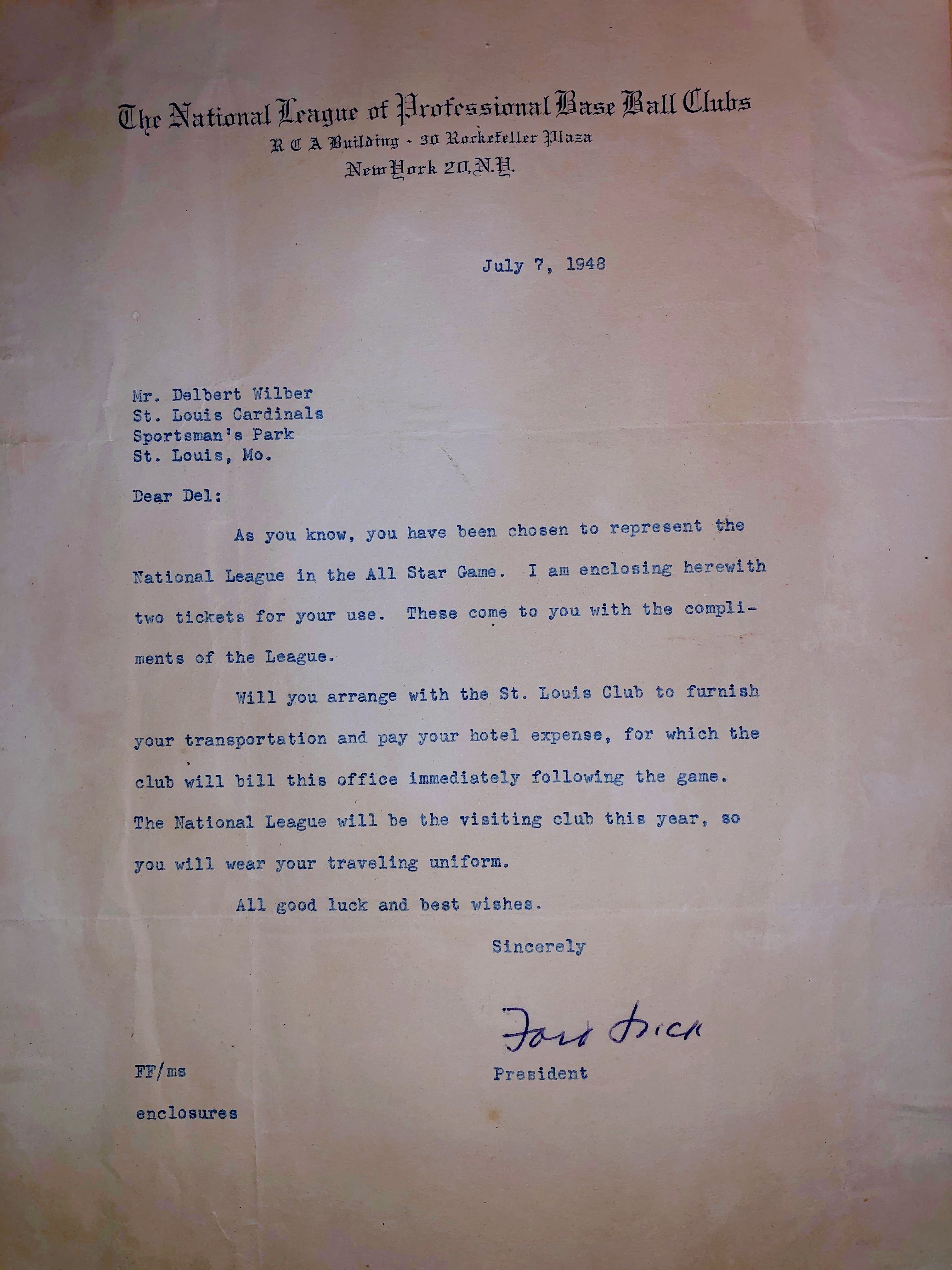 My dad was a helluva ballplayer. You had to be to spend nearly 10 years in the big leagues when there were only eight teams in each league. But, he was never a threat to make the All-Star team. I had no clue what this letter was about, so I had to do some digging.
