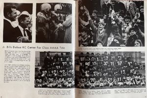 SLUH was slotted into the Missouri State Athletic Association with the largest schools, Class AAAA, despite the fact we had less than 1,000 students in our full enrollment. The reason for that was the pesky fact we were an all-boys school, so the association based our enrollment on twice that number, since there were no girls. Our gridiron guys marched through the season and the playoffs all the way to the Missouri State Final, played at the University of Missouri in Columbia. We packed a dozen chartered Greyhound buses to get there. Kansas City Center High was the opponent, so Mizzou was a great place to play them, right in the middle of the state.