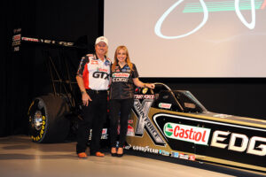 Following in Ashley’s footsteps Courtney Force took the Funny Car class by storm in 2012. She immediately etched her name in the record books when she won the Seattle national event and shared the winner’s circle stage with Pro Stock winner Erica Enders. It marked the first time two women had won pro categories at the same NHRA national event. Two years later Courtney earned the landmark 100th victory for females in the NHRA Camping World Series (then the Mello Yello Series).